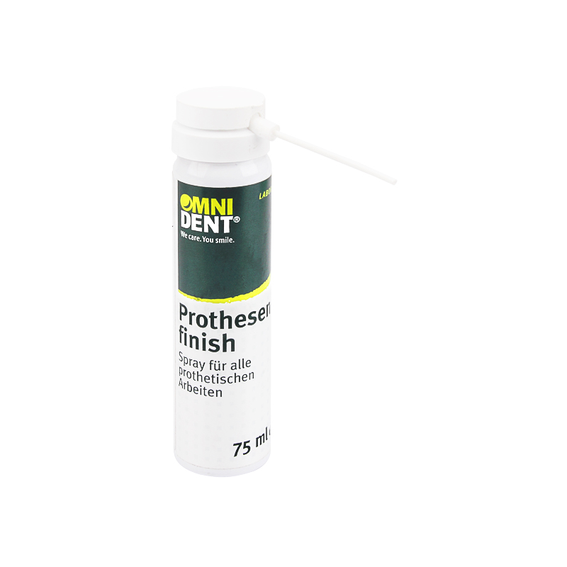 Prothesenfinish niemieckiej firmy Omnident to wysokiej jakości preparat do czyszczenia i pielęgnacji protez akrylowych. Doskonale usuwa pozostałości monomeru z powierzchni tworzywa sztucznego. Polepsza przyleganie protez, zapewnia im trwały, wysoki połysk oraz nadaje świeży, miętowy smak. Posiada też właściwości antybakteryjne. Forma sprayu ułatwia wydajne dozowanie preparatu.