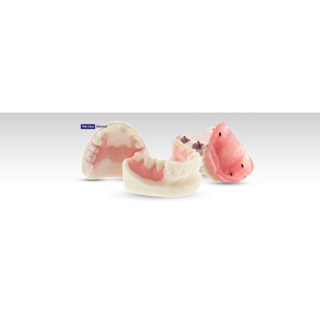 To innowacyjny, praktycznie niezniszczalny, nie zawierający monomeru, sztywny materiał na płyty protez całkowitych lub częściowych. Jest idealnie dopasowany do pacjentów, którzy nie chcą lub nie mogą zaakceptować protez dentystycznych wykonanych z materiałów mogących powodować reakcje alergiczne lub inne rodzaje nadwrażliwości. Rosnąca w społeczeństwie świadomość tych problemów, oraz potrzeba zaoferowania przez profesjonalistów rozwiązań bio-kompatybilnych, materiałów, które nie zawierają szkodliwych surowców sprawia, że materiał Vertex ThermoSens ma do odegrania ważną rolę na dzisiejszym rynku stomatologii. Praktycznie brak skurczu polimeryzacyjnego, znakomite dopasowanie. Jest nie tylko utworzony z wyjątkowego materiału termoplastycznego, ale także zapewnia wiele innych, ważnych korzyści. Umożliwia doskonałe dopasowanie w wyniku braku skurczu polimeryzacyjnego. Ponadto materiał jest uniwersalny i bardzo łatwy w użyciu. Może być stosowany do realizacji podścielania. Nadaje się także do tworzenia protez typu overdenture na implantach. Możliwe jest także jego zastosowanie do napraw. Nie wymaga pakowania próżniowego, ponieważ materiał charakteryzuje się dobrą odpornością na wilgoć. Można go łatwo i szybko polerować.