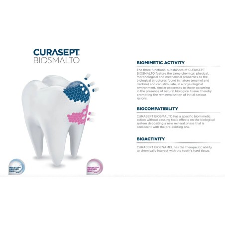 Mus Curasept Biosmalto zapewnia szybką remineralizację bardzo uszkodzonych obszarów szkliwa i zębiny. Zwiększa odporność zębów na kwasową erozję, ścieranie i działanie bakterii. Wspomaga leczenie białych plam. Delikatnie miętowy smak. Wyrób medyczny.