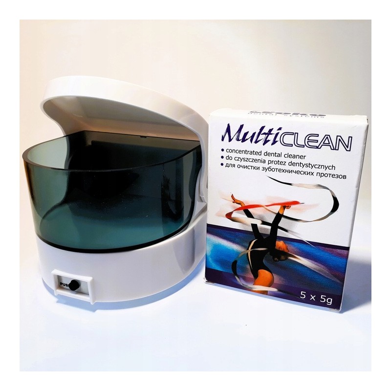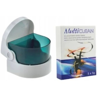 Proszek Multiclean dedykowany jest do czyszczenia protez wykonanych z tworzyw termokurczliwych, akrylu i metalu. Można go z powodzeniem stosować do czyszczenia ruchomych aparatów ortodontycznych i szyn. Utrzymuje oryginalny wygląd protezy i zapobiega zmianom w kolorze i przezierności tworzywa. Neutralizuje nieprzyjemne zapachy, oczyszcza z nalotu, osadu i przebarwień.