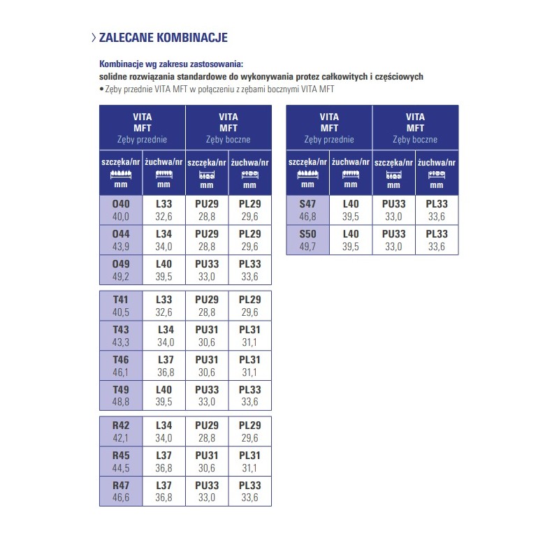 Multifunkcyjne Zęby VITA MFT mają szeroki zakres zastosowania: